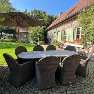 De vakantiewoning heeft een volledig omheinde tuin met de nodige privacy. De tuin is omzoomd door kleurrijke bloemenborders en heeft een aangenaam terras met een teak tafel en tuinstoelen en er zijn ook relaxzetels (wat vrij uitzonderlijk is in vakantie-woningen). Bij het drinken van een 'Oudenaards bruintje' of bij een barbecue op het terras met familie of vrienden geniet je beslist van de sfeer en de rust die er heerst.
